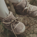 Let's go to the North Pole! The Inuk Lining is the perfect boot this winter! Let your little one enjoy nature and look adorable at the same time in these beautiful boots. The uppers are made of warm faux sheep fur. The leather laces ensure these boots stay firmly on during little adventures. These boots are true to size. In doubt choose one size up.